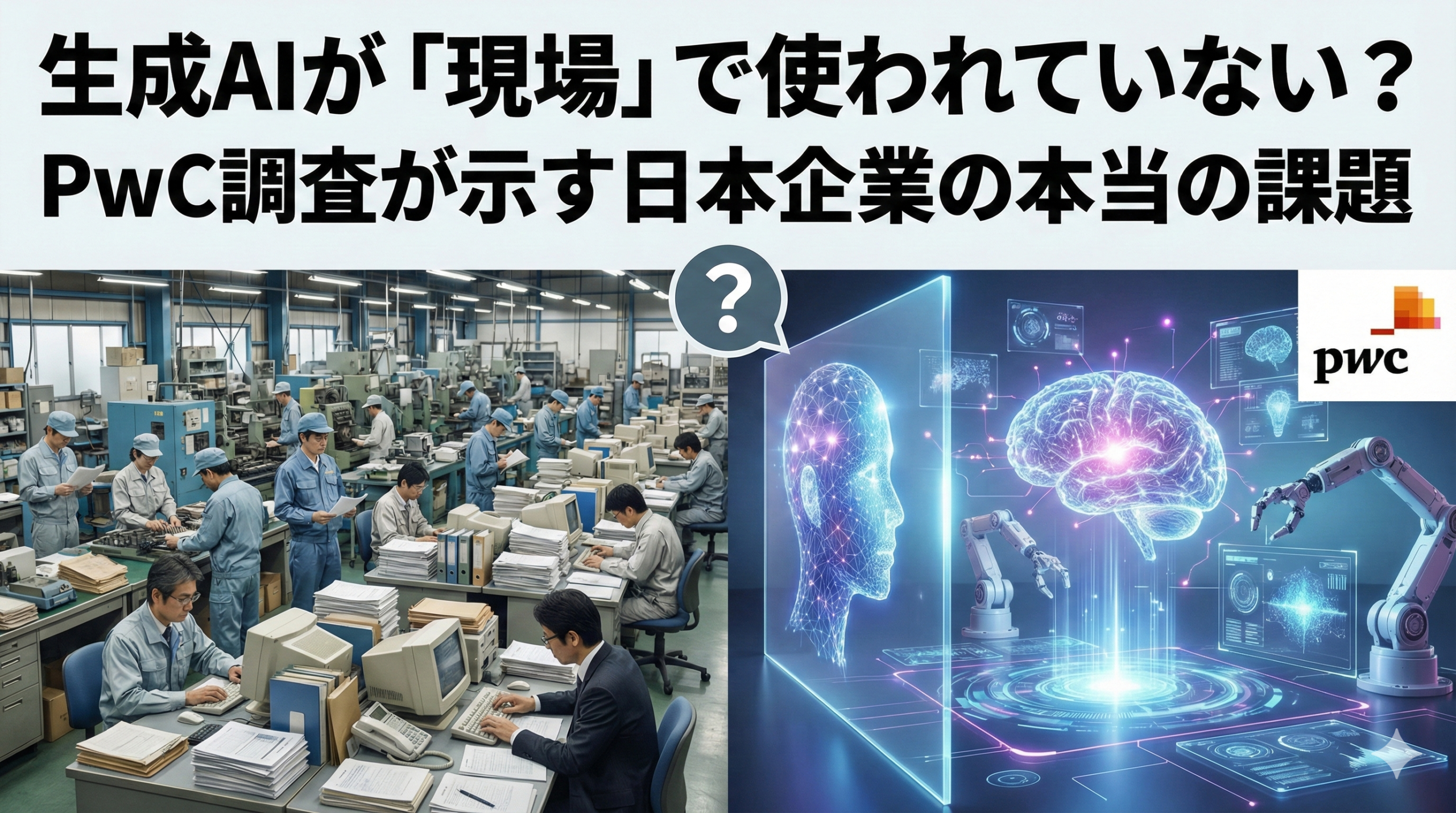 世界48カ国を対象としたPwCの調査は、「従業員」に対して行われています。つまり、「会社として導入していますか?」ではなく、「あなた個人は今日、仕事でAIを使いましたか?」と問いかけたわけです。これによって、建前ではないAI活用の実態が明らかになりました。